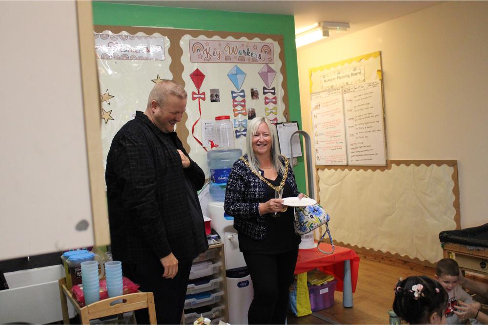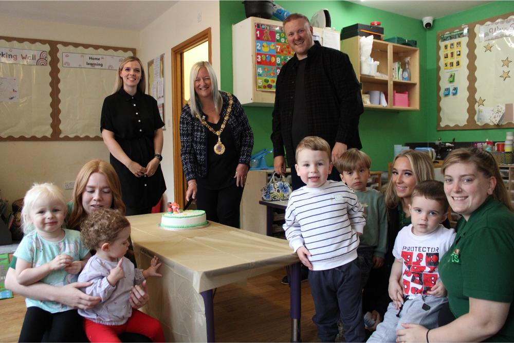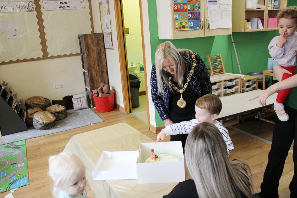 During her visit, the Mayor enjoyed a tour of the nursery, met parents and staff, and joined the children for a special cake-cutting to mark the achievement.