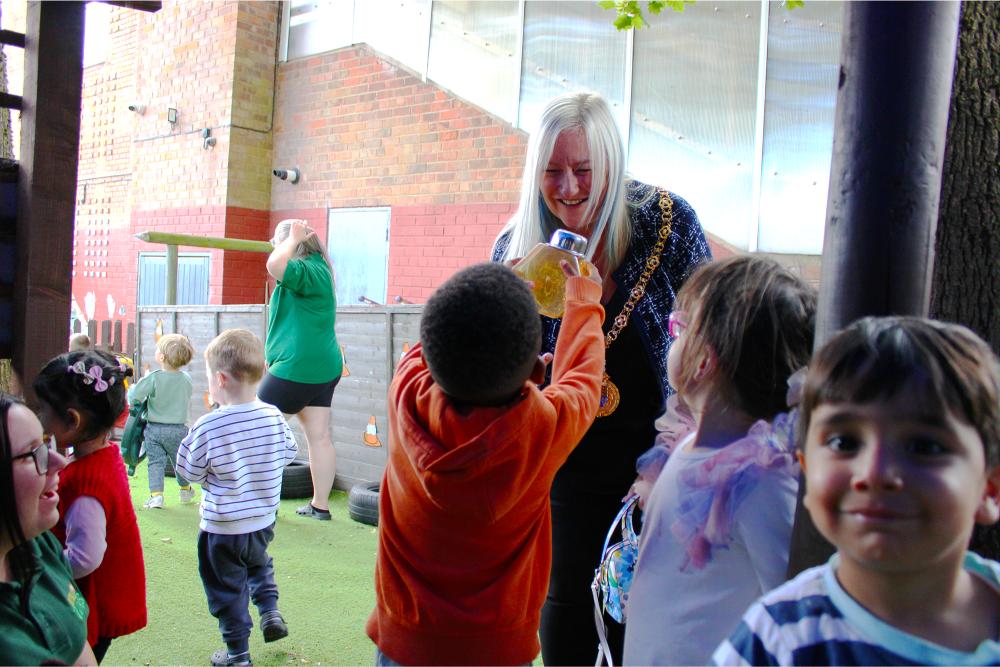 Little Tots Day Nursery in Sutton Coldfield had a very special visitor today, as the Mayor of Walsall, Councillor Louise Harrison, joined children, families and staff to celebrate the nursery’s recent Outstanding Ofsted result.
