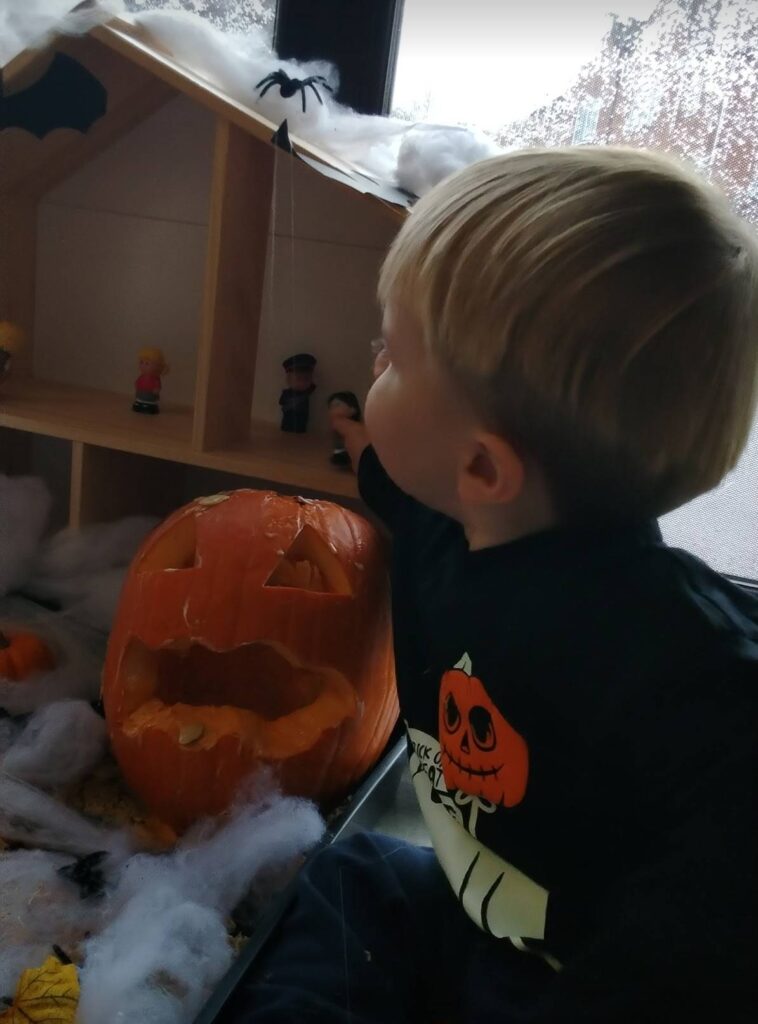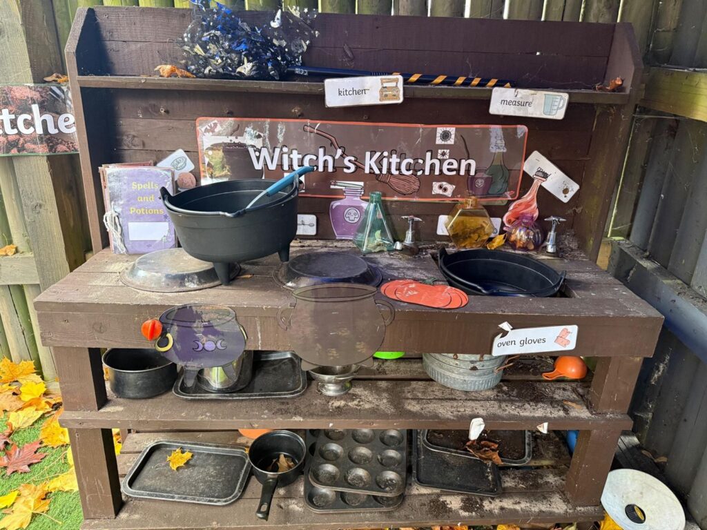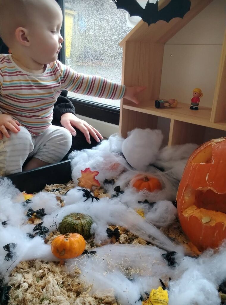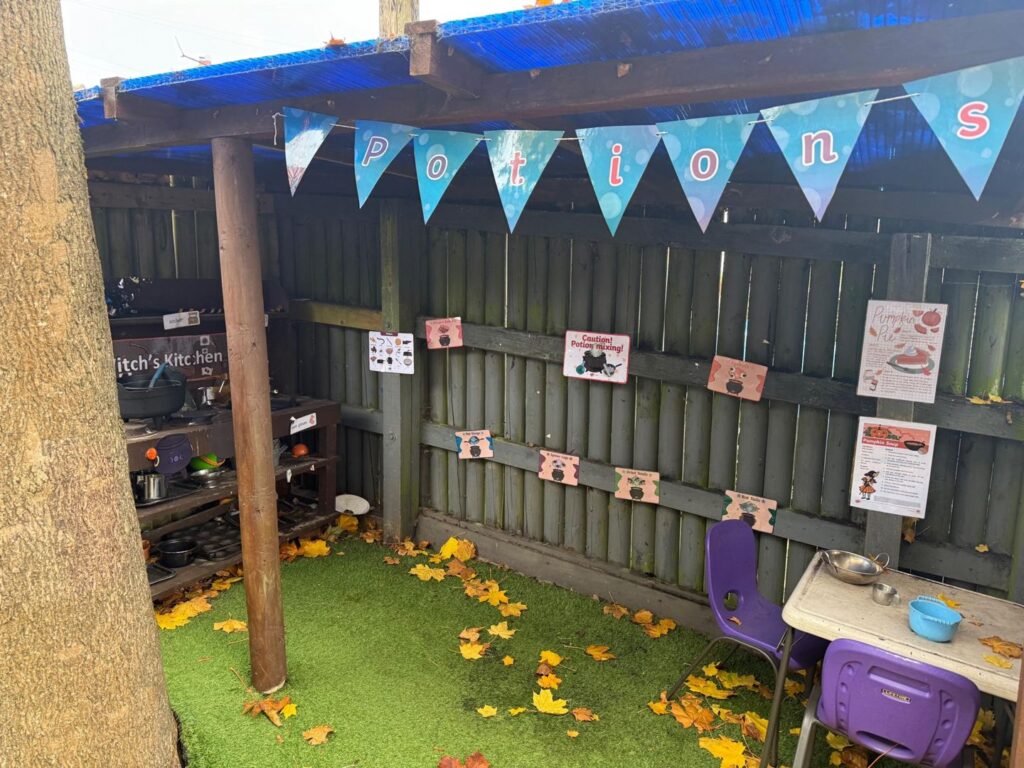 From magical costumes to pumpkin adventures, our children, and staff fully embraced the spooky season. Little Tots transformed into a mini pumpkin patch, complete with hay bales and bright orange pumpkins for the children to explore, while the Witches’ Kitchen was bubbling away with all sorts of sensory spells and slimy surprises.